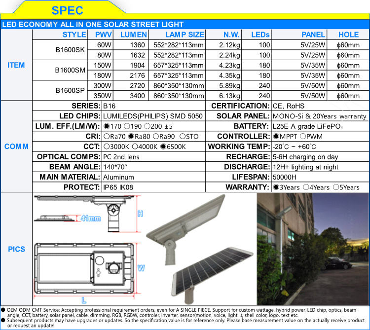 Nom du produit:Éclairage solaire B16Series - Lampadaires solaires