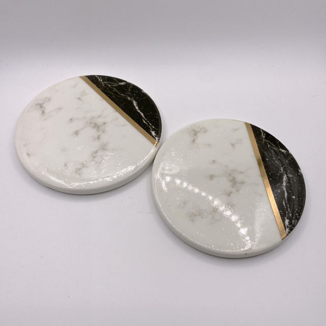 Sous-verre en marbre blanc de haute qualité ensemble de 4 sous-verres ronds en jonc de mer naturel avec bords dorés emballés dans un carton