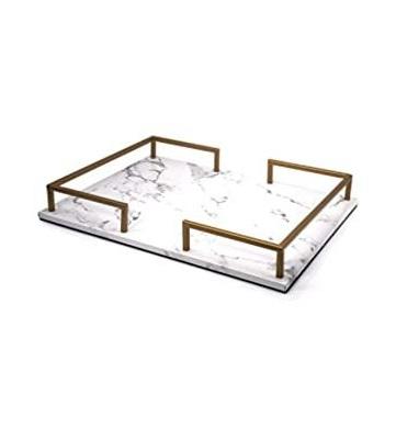 High Quality Marble Serving Tray with Golden Metal Handle Elegant Table Decoration