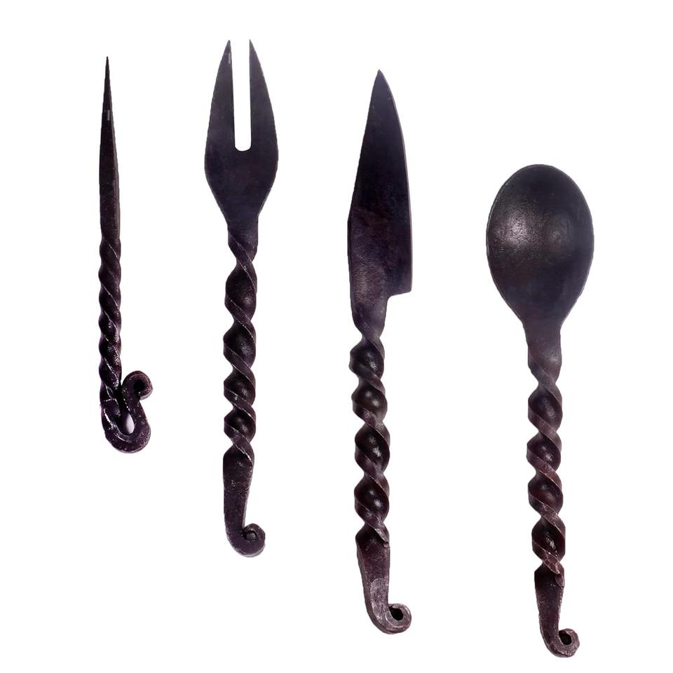 Ensemble de couverts de style médiéval de haute qualité, parfait pour la décoration, les cuisines domestiques et les tables à thème, en provenance d'Inde.