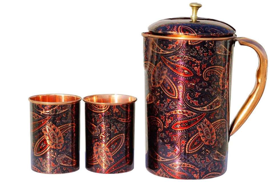 Pichet de citron gaufré en cuivre avec 4 verres martelé Ensemble de 5 cuivreNom du produit
