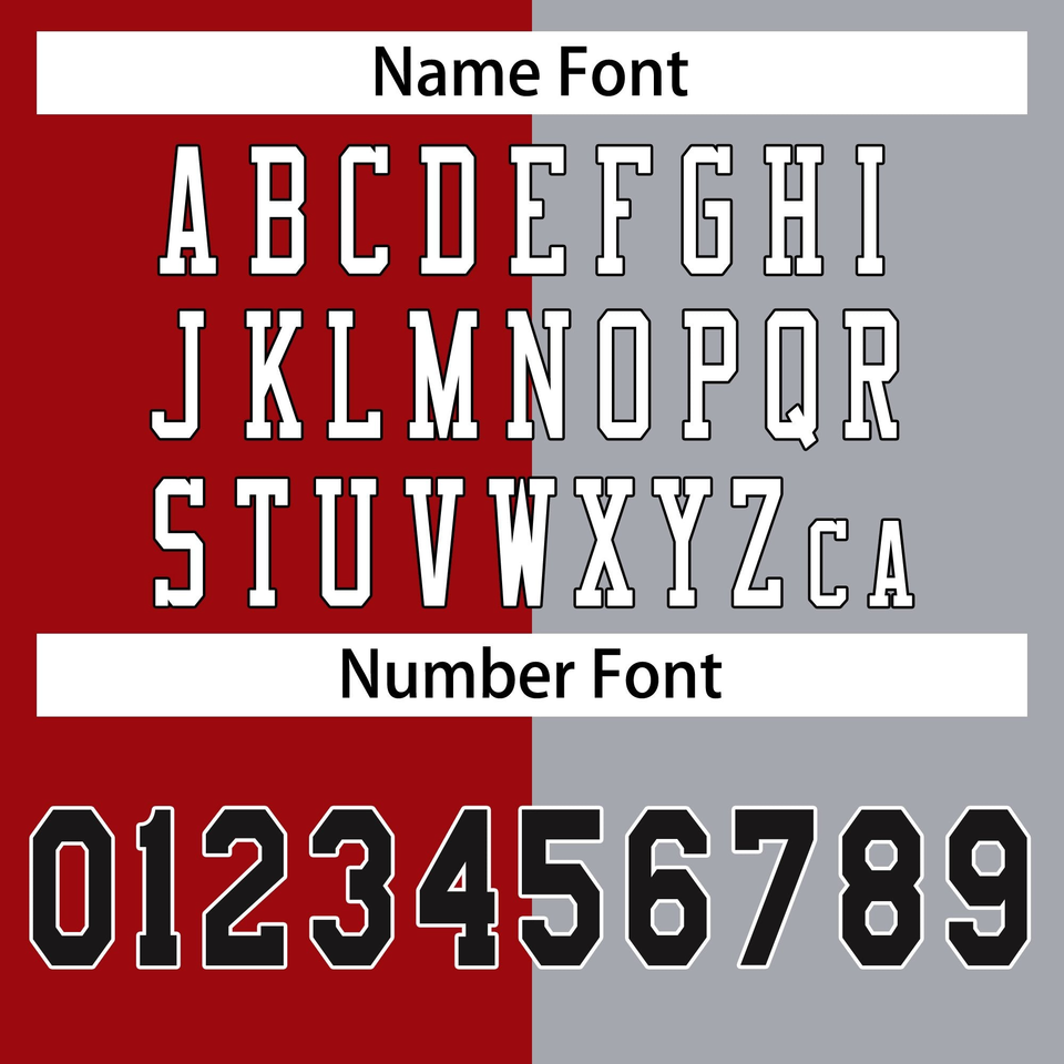 Type de motif:Nom du joueur, Nom de l'équipe, Numéros de l'équipe