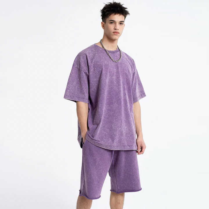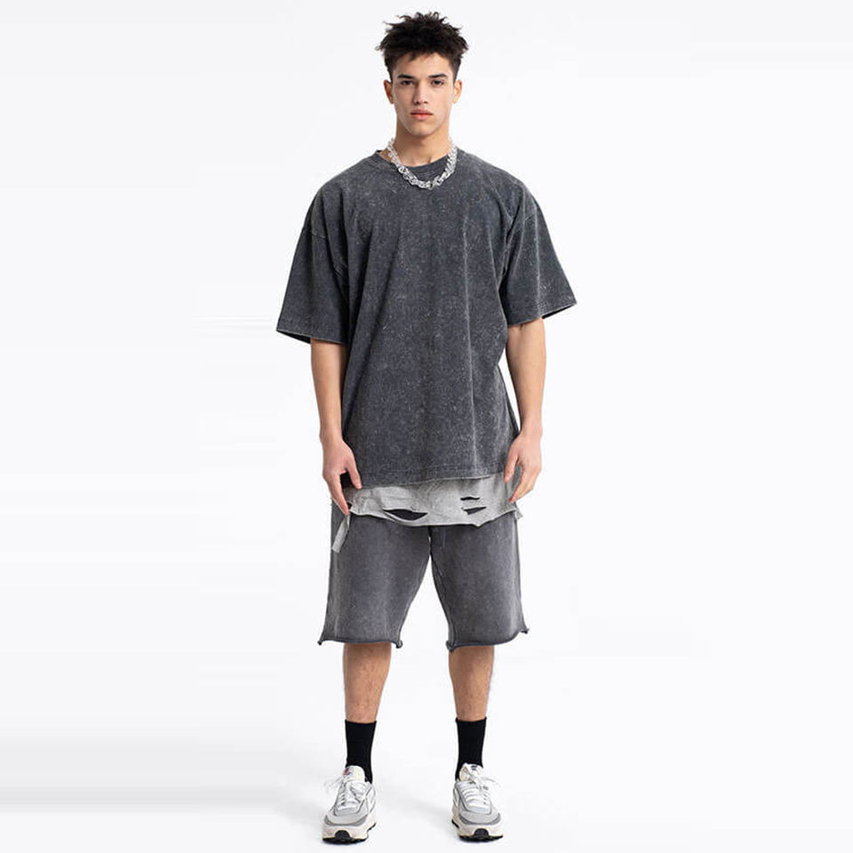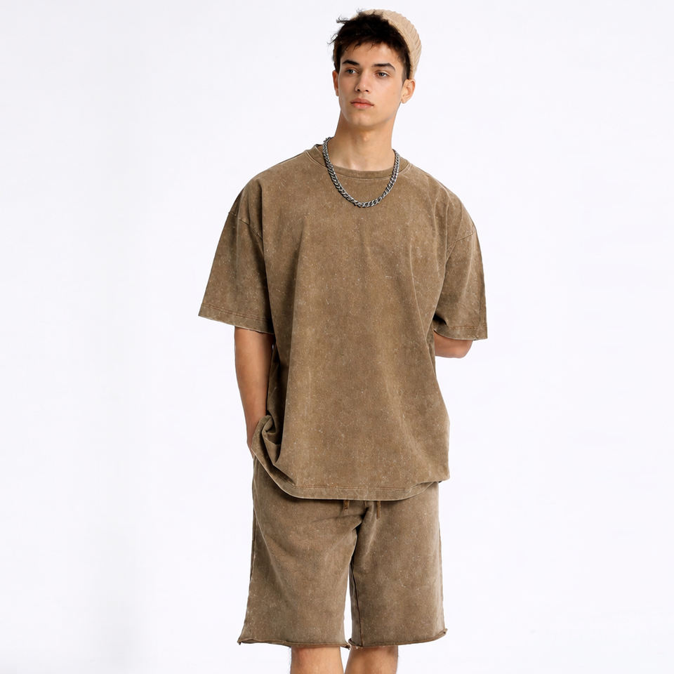 Ensemble T-shirt et short en coton tricoté lavé de haute qualité pour homme, coupe oversize, séchage rapide, survêtement streetwear personnalisé, ensemble décontracté d'été
