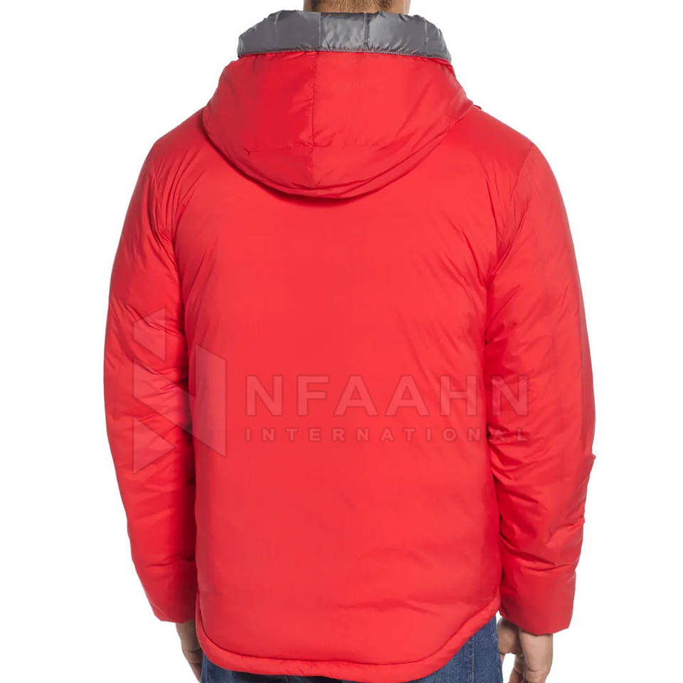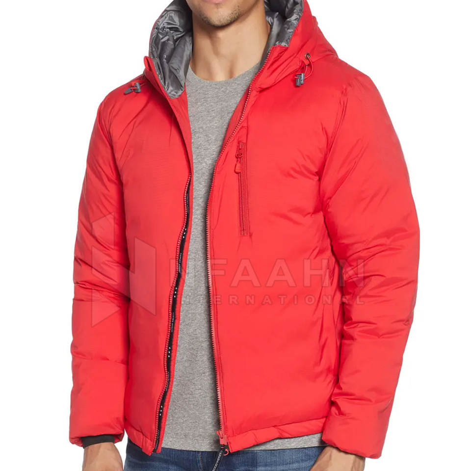 Blouson matelassé à capuche pour homme de haute qualité, avec col montant et logo frontal, collection Hiver 2025, chaud et personnalisable pour la vente en ligne