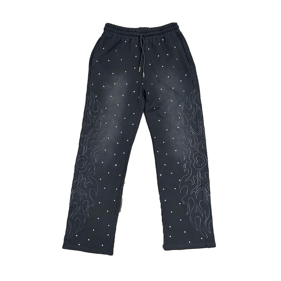 Haute qualité hommes Street Style pantalons de survêtement soleil délavé perdre Fit 2 poches Style sérigraphie et partout strass Flare pantalon