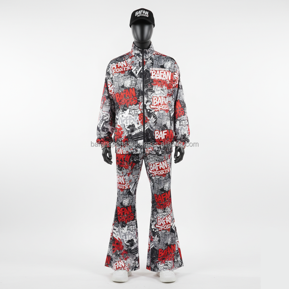 Haute qualité hommes survêtement respirant Polyester tissu rouge noir blanc impression graphique Logo personnalisé Sublimation Style hommes survêtement