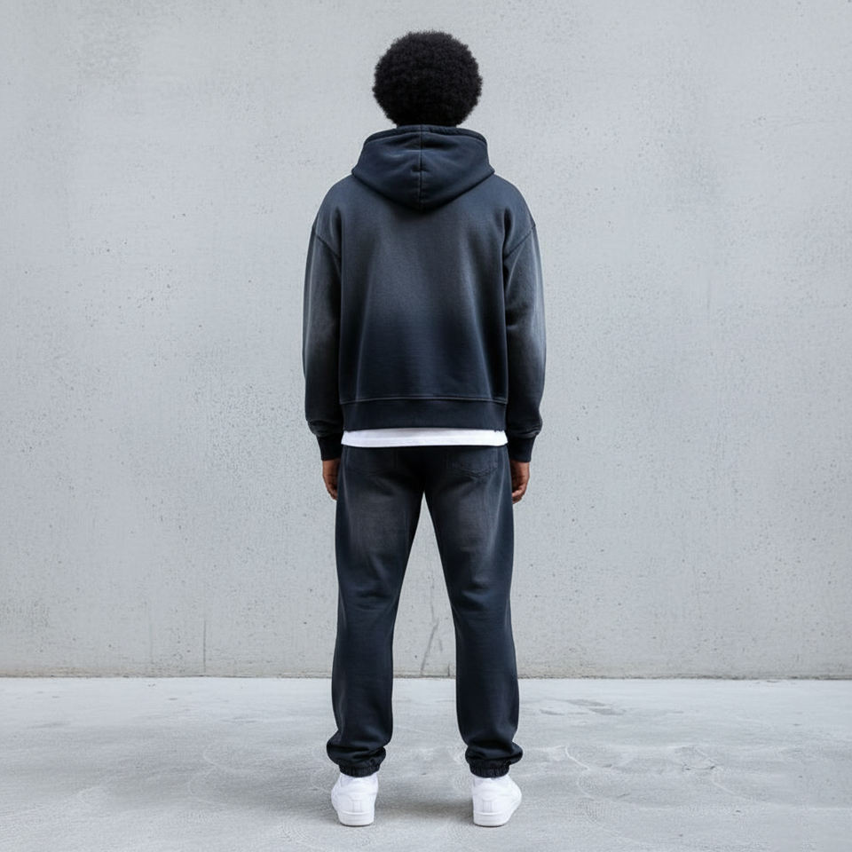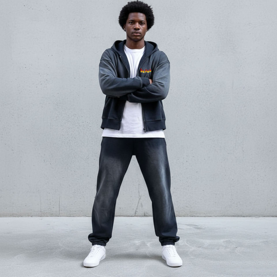 Ensemble 2 pièces pour homme de haute qualité, en molleton 100% coton épais délavé à l'acide, avec logo imprimé personnalisé, style streetwear hip-hop, survêtement à capuche