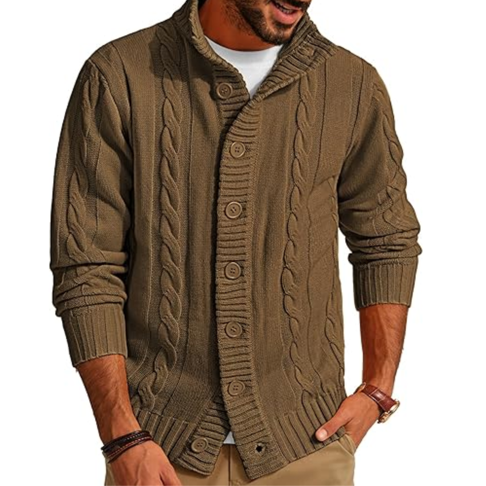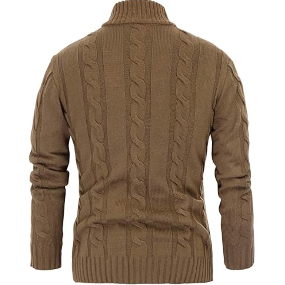Cardigan décontracté en maille acrylique de haute qualité pour homme, col montant, manches longues, patchwork, bouton unique