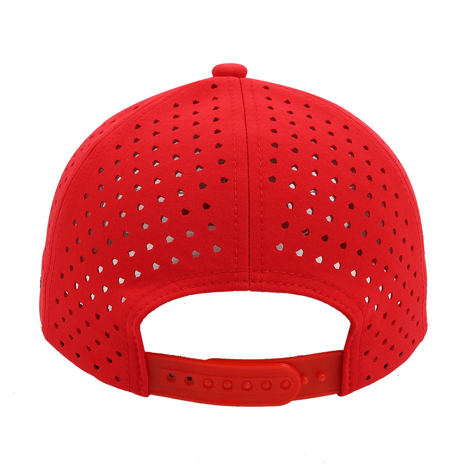 Casquette de baseball personnalisée à 6 panneaux pour hommes de haute qualité Casquette de baseball imperméable à l'eau avec trou découpé au laser Logo brodé personnalisé Casquette de sport à la mode