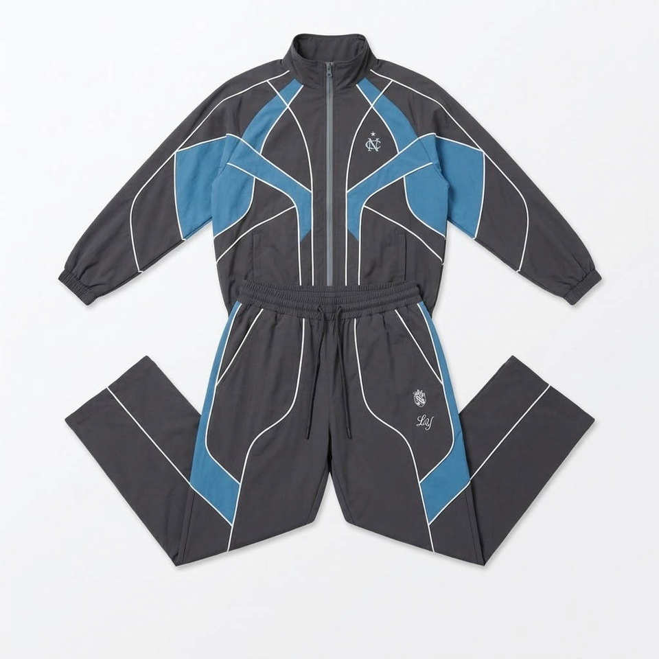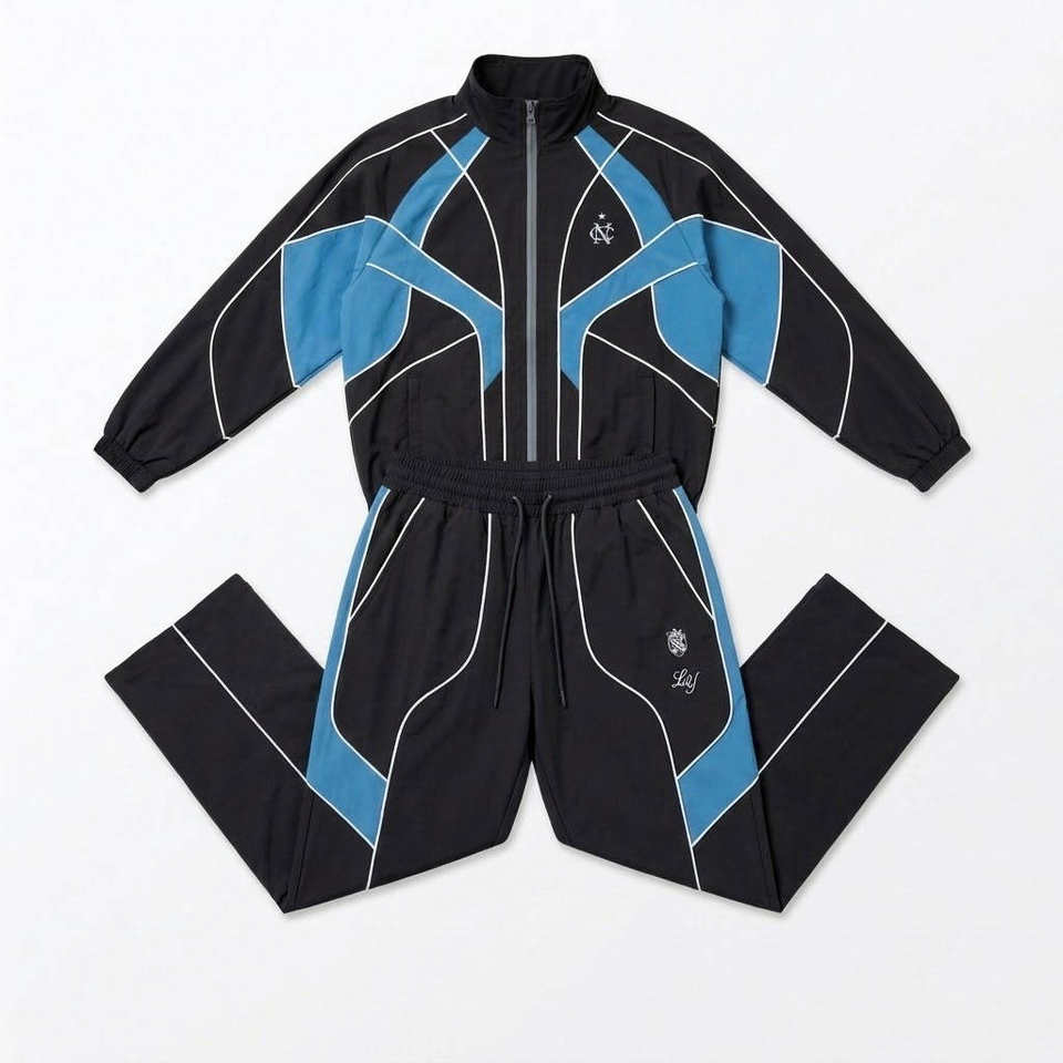 Ensemble veste et pantalon de survêtement pour homme en polyester et nylon réfléchissant, patchwork personnalisé, haute qualité, tricoté, collection 2026