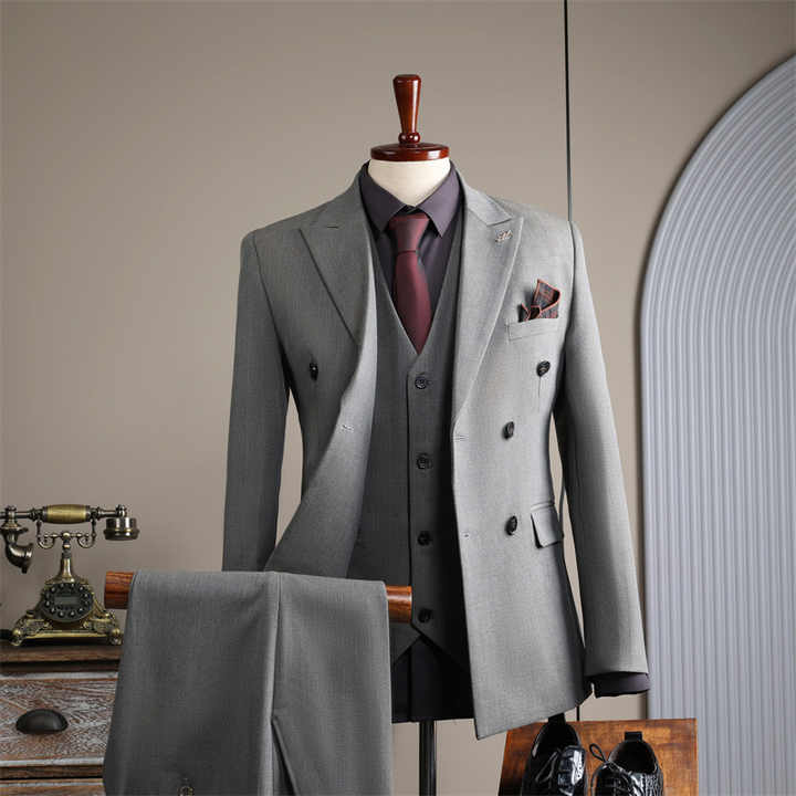 Costume Homme de Haute Qualité à Double Boutonnage 3 Pièces, Style Britannique Formel pour Mariages et Tenues Décontractées d'Affaires, Costume de Marié