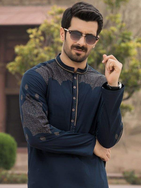 Chemises habillées d'été à motif floral pour hommes de haute qualité brodées en coton anti-rétrécissement Kurta Service OEM pour Salwar Kameez