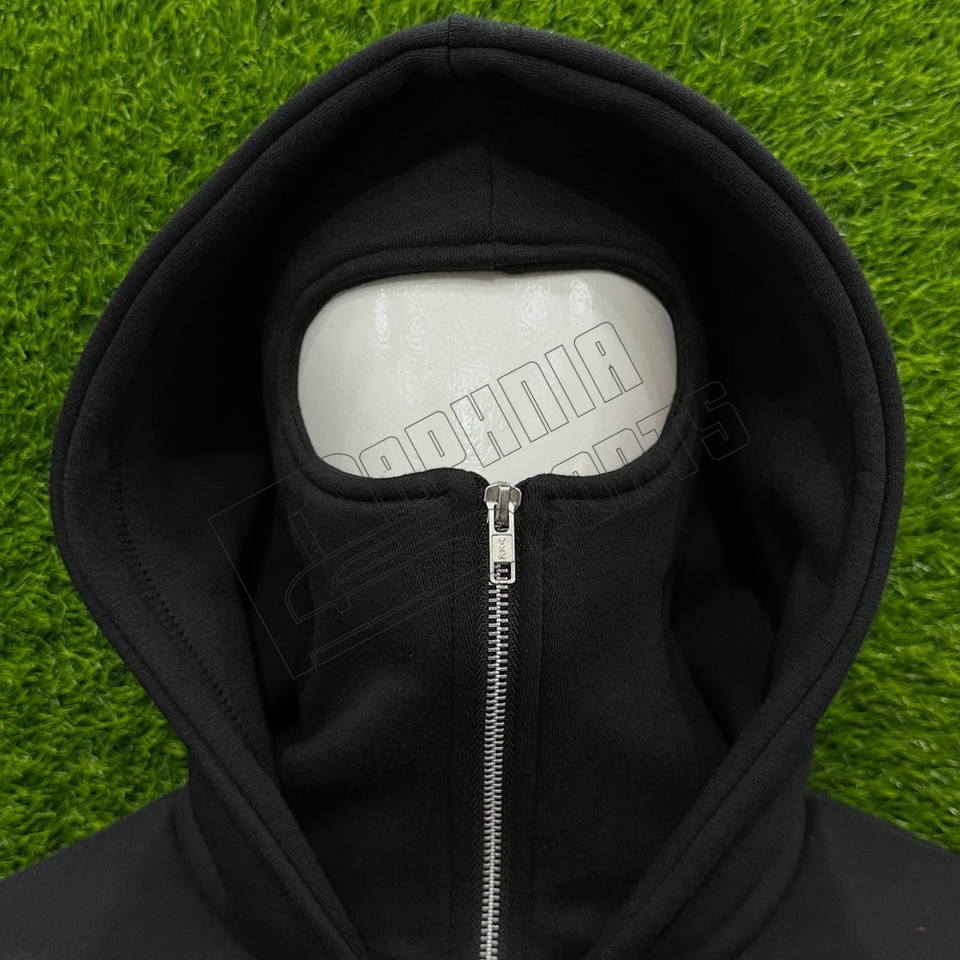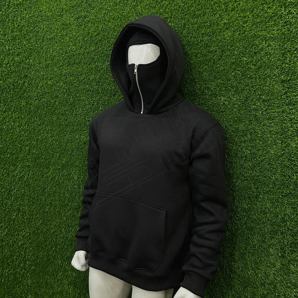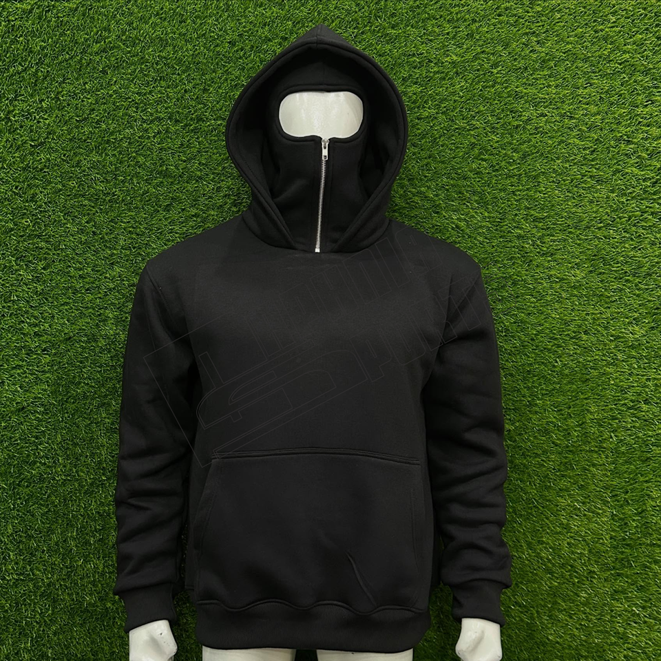 Cagoule Ninja Zippée Masquée Intégrale de Haute Qualité pour Homme, Sweat à Capuche Zippé Unisexe Personnalisé OEM Streetwear, 100% Hiver Teint Uni