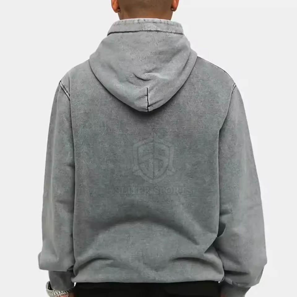 Pull à capuche délavé à l'acide de haute qualité pour hommes manteau d'hiver respirant à séchage rapide avec impression de logo personnalisé motif solide