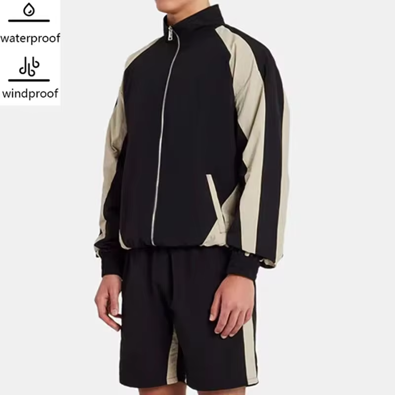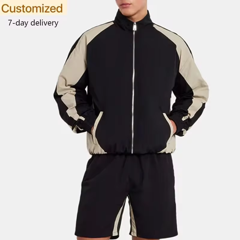 Veste pour homme de haute qualité, veste softshell personnalisée, survêtement, coupe-vent à blocs de couleur, ensemble court pour homme