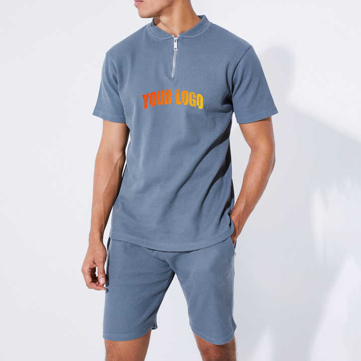 Ensemble court 2 pièces pour homme de haute qualité, longueur genou, 100 % coton, impression sérigraphique personnalisée, prix bas, respirant, ensembles jumeaux personnalisés