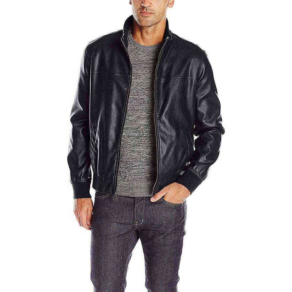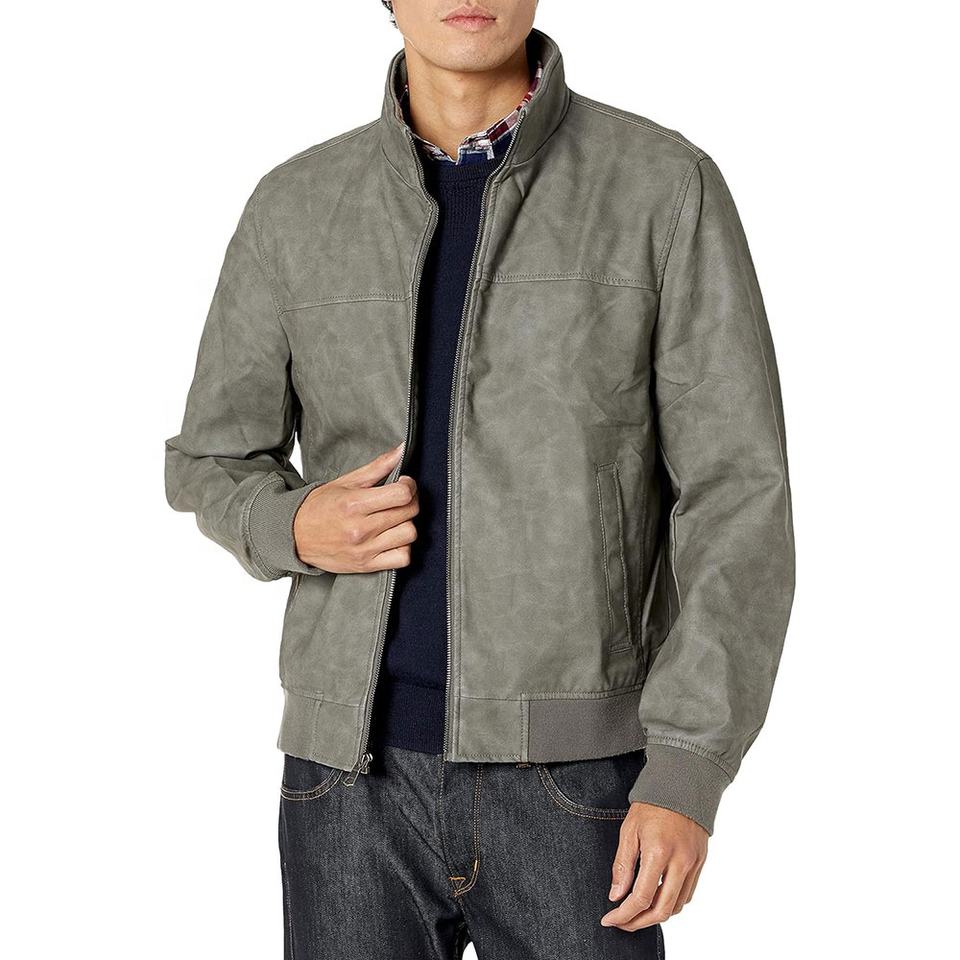 Veste en cuir de haute qualité pour hommes grande taille col montant veste en cuir à fermeture éclair veste en cuir de moto coupe ajustée pour hommes
