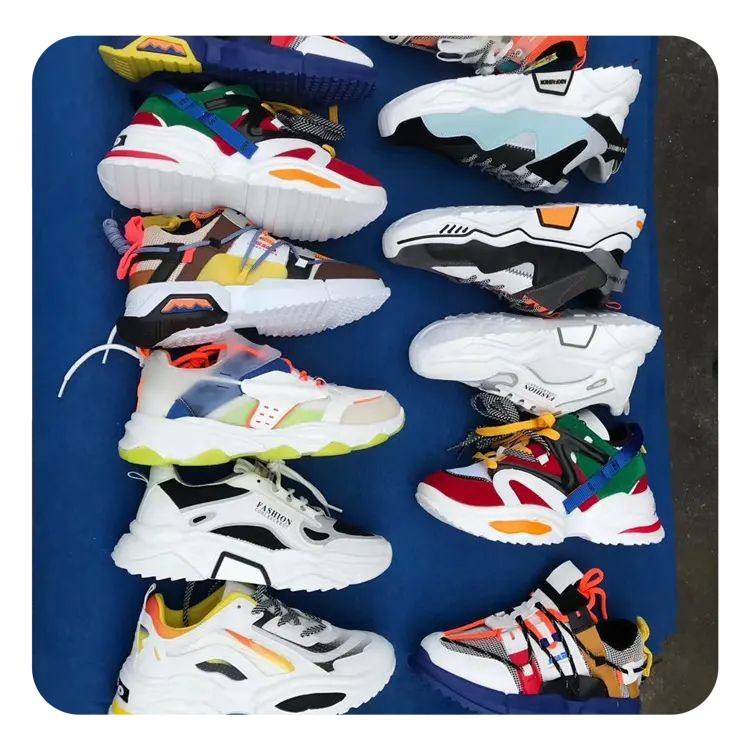 Chaussures de sport légères et respirantes pour hommes de haute qualité, vente en gros, étiquette coupée, stock, chaussures de course d'occasion, chaussures épaisses d'occasion