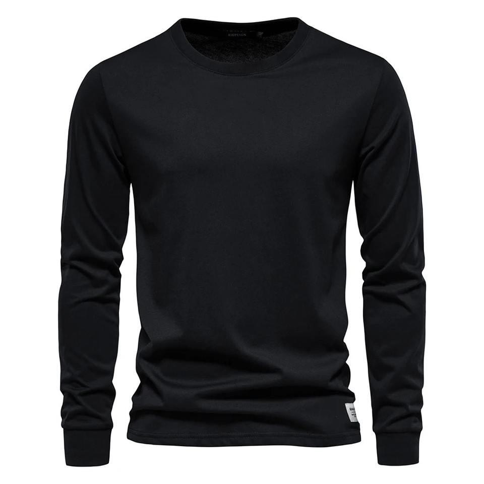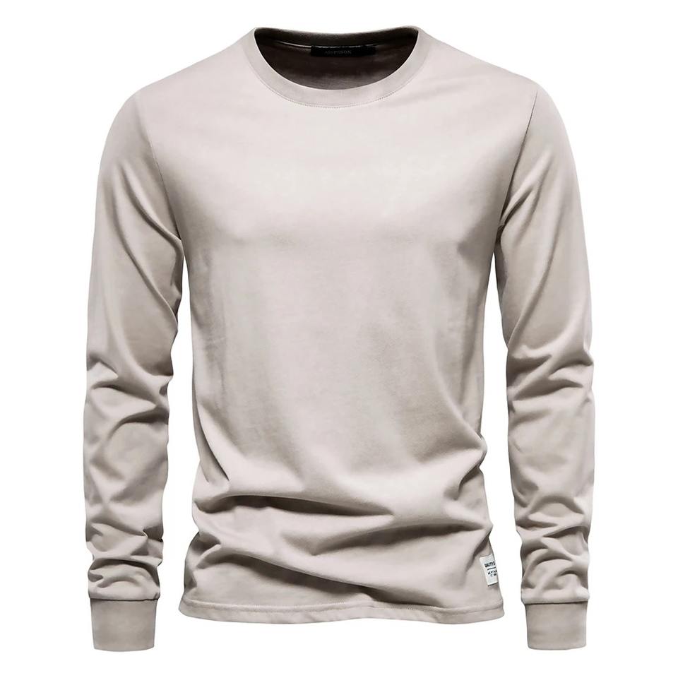 T-shirt basique à col rond pour hommes de haute qualité décontracté à manches longues pour le printemps automne couleur unie Anti-rides tricoté tissu imprimé