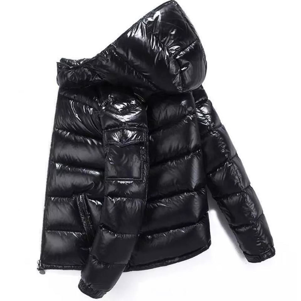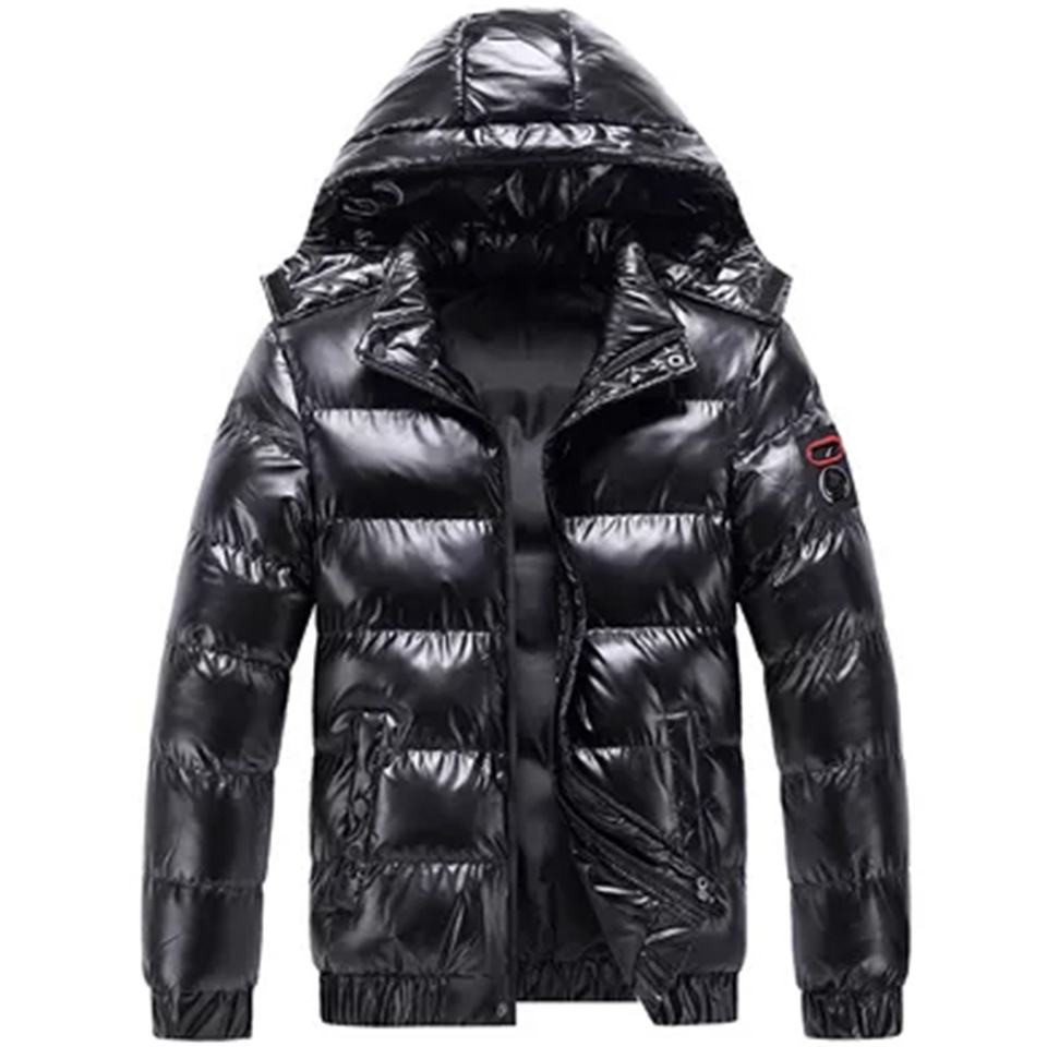 Manteau bouffant surdimensionné pour hommes de haute qualité Bomber d'hiver à impression lumineuse avec capuche brillante Style pull court et épais