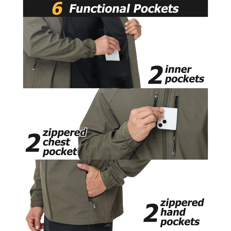 Veste softshell de haute qualité pour hommes à manches longues avec fermeture éclair et col montant veste d'hiver légère et imperméable avec poche zippée