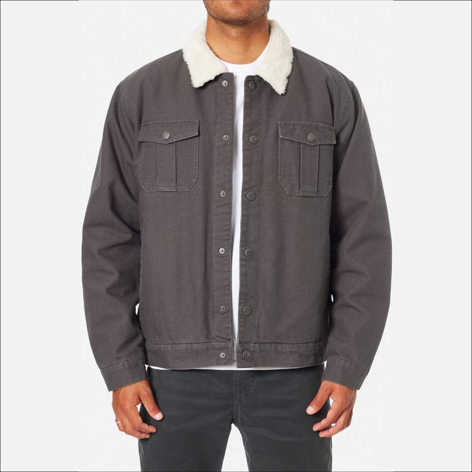 Haute qualité hommes élégant toile col rabattu 100% coton jean gris foncé Denim vestes faible quantité minimale de commande personnalisé lavé avant Logo