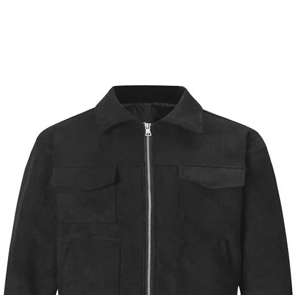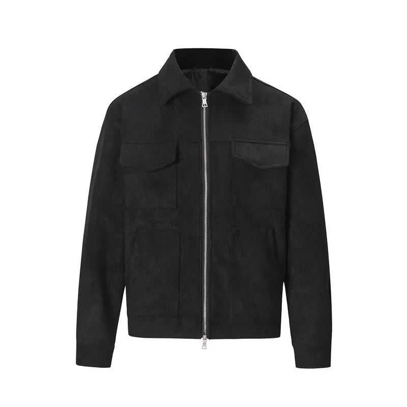 Veste en cuir suédé de haute qualité pour hommes avec col montant et veste en toile de style de rue à fermeture éclair épaisse multi-poches