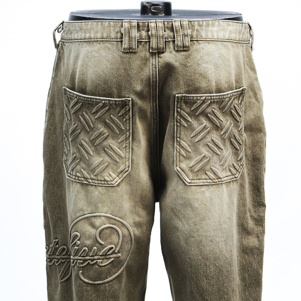 Jeans vintage rock revival pour homme de haute qualité, délavés au soleil, coupe droite, ample, jeans 3D en relief, personnalisés