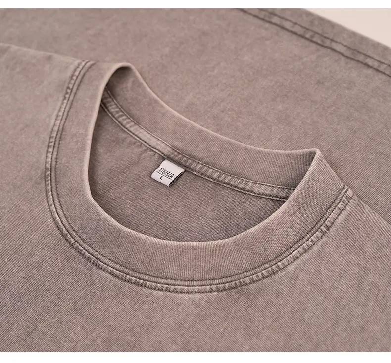 Haute qualité hommes unisexe rétro lavé 100% coton T-Shirt à la mode coupe régulière écologique goutte épaule conception motif solide