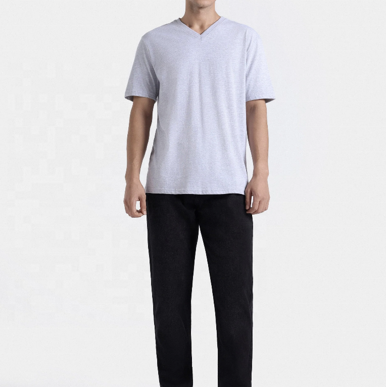 T-shirt en coton pour homme de haute qualité, col en V, tissu 180g, coupe ajustée, manches courtes, couleur unie, décontracté, fitness, pas cher
