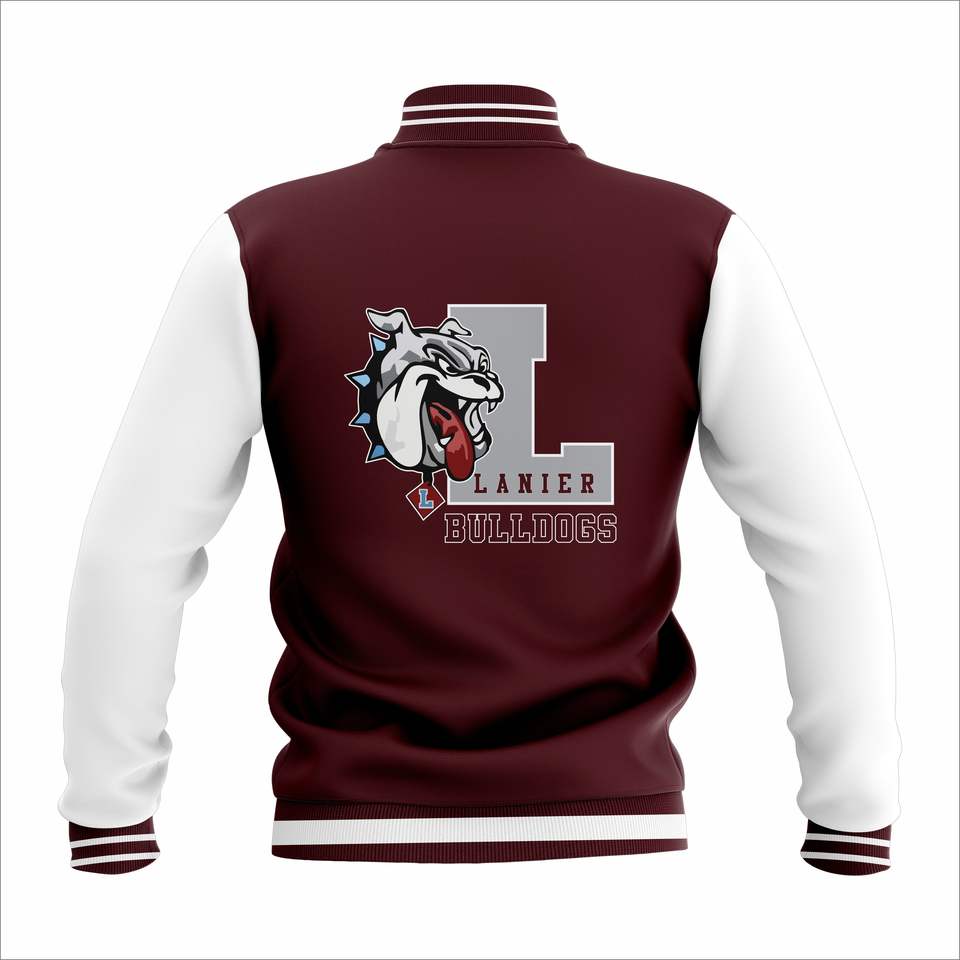 Veste universitaire pour homme de haute qualité avec broderie de logo personnalisée, col montant, patchwork en cuir sur le devant - Style streetwear