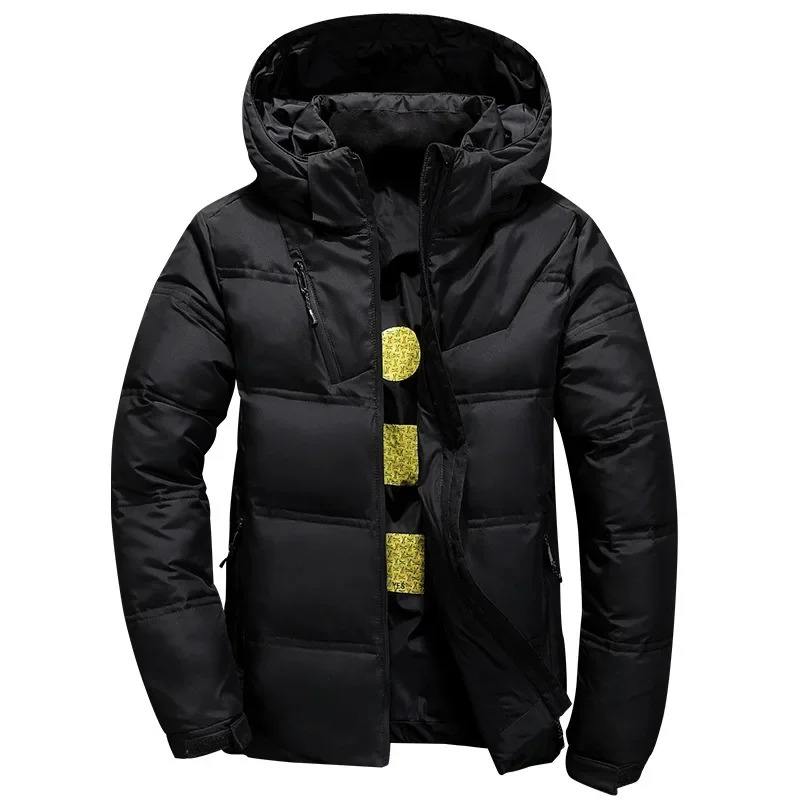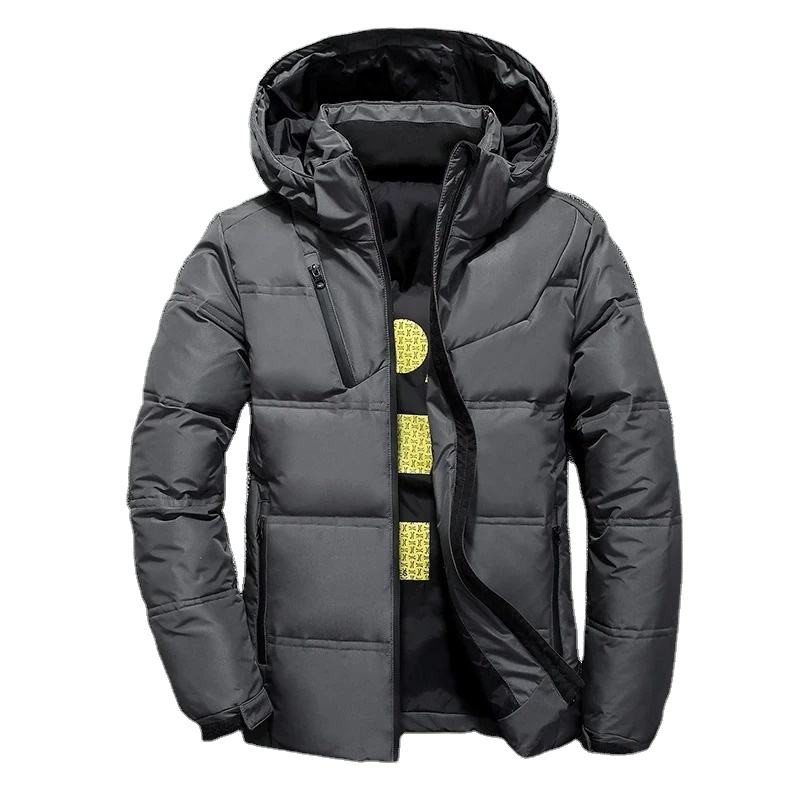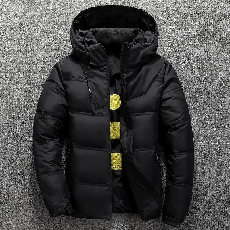 Veste d'hiver pour hommes de haute qualité Parka de canard blanc avec capuche Couleur unie Manteaux chauds et épais pour une utilisation en extérieur