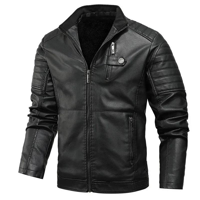 Veste en cuir d'hiver pour hommes de haute qualité manteau de moto coupe-vent pour jeunes avec laine épaissir vêtements en toile chaude pour hommes