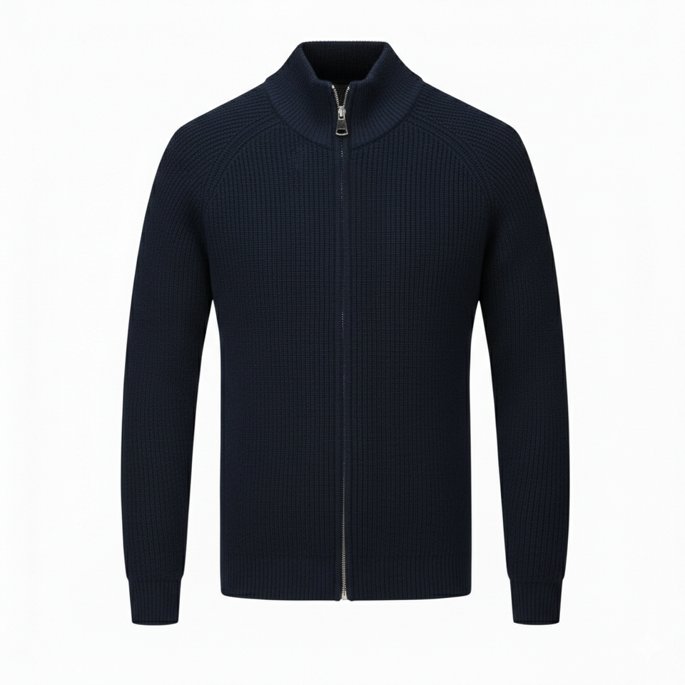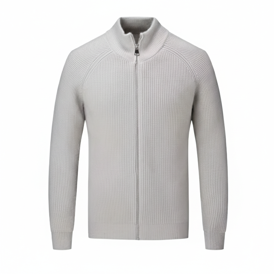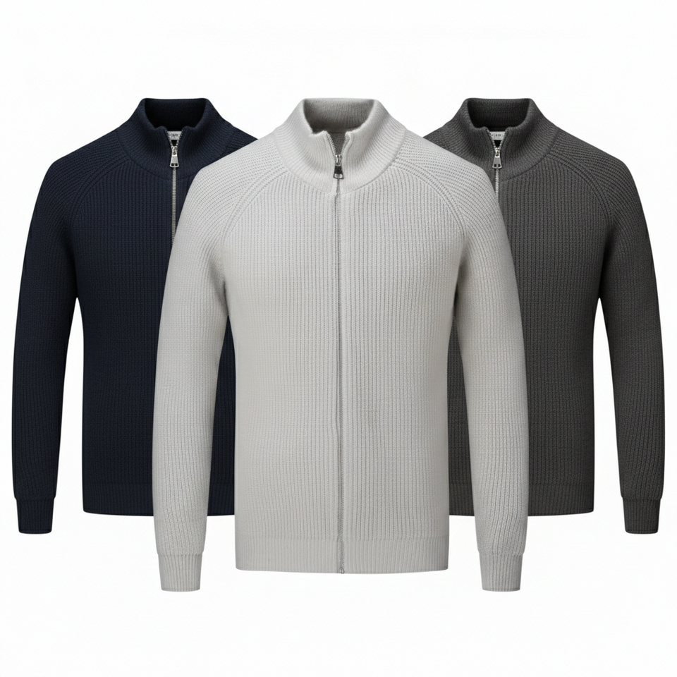 Cardigan en laine/cachemire tricoté pour homme de haute qualité, anti-boulochage, avec fermeture à ceinture, col montant côtelé, imprimé, pour un style décontracté