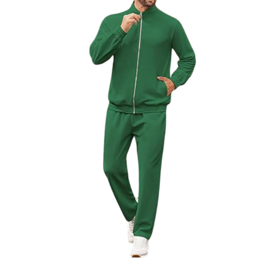 Haute qualité hommes 2 pièces hiver survêtement vert sauge formel survêtements pleine fermeture éclair solide imprimé respirant polaire basket-ball