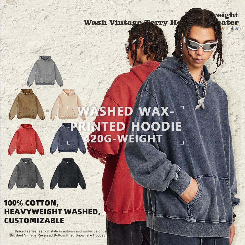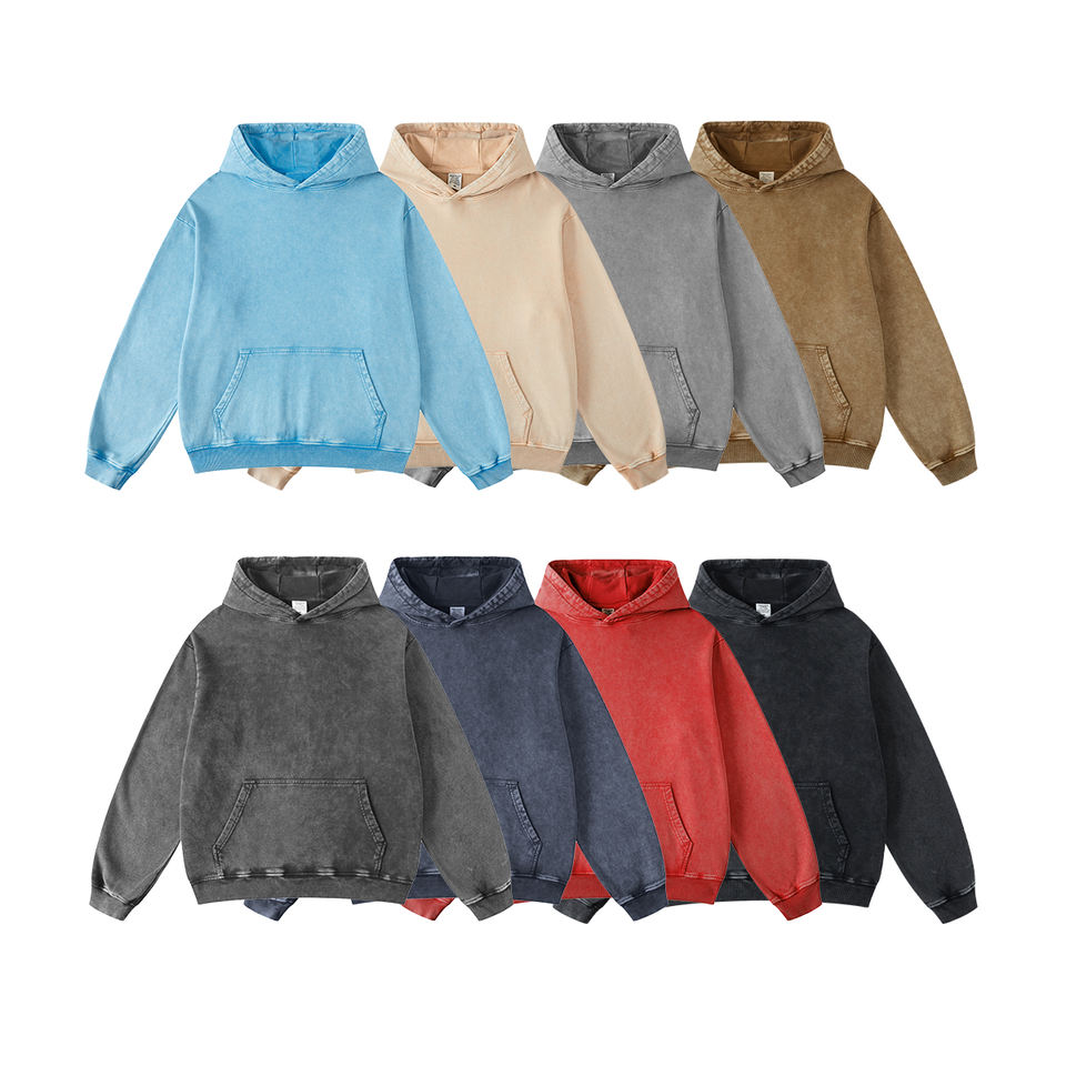 High Quality Mens Acid Wash Hoodie With Custom Design Printing Vintage Style Heavy Cotton Fabric Wholesale Supplier