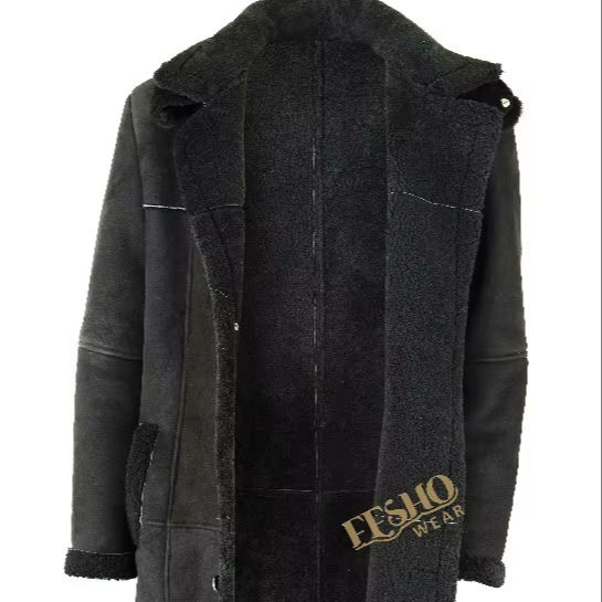 Manteau long pour hommes avec capuche:Fabriqué à partir de cuir de mouton véritable