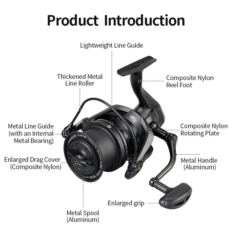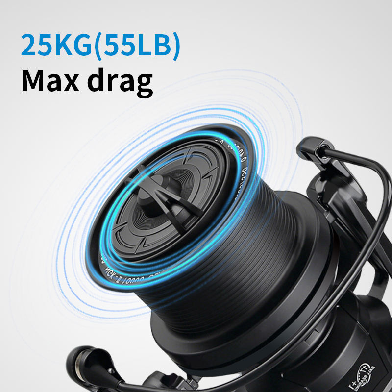 Moulinet de Pêche à Lancer Haute Qualité, Corps Métallique, Longue Portée, pour Grande Pêche, avec Leurre, Matériel de Pêche de Gros, 25 kg de Frein Max, Roue pour Eau Salée