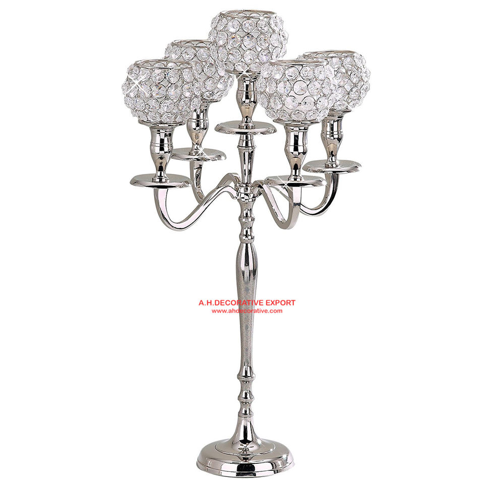 Candélabres en métal de haute qualité pour centres de table de mariage prix de gros nouveau candélabre fait main au sol en argent 5 bras