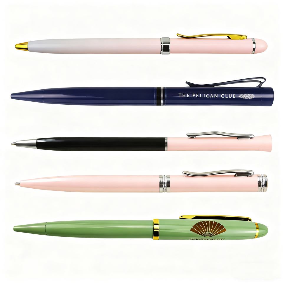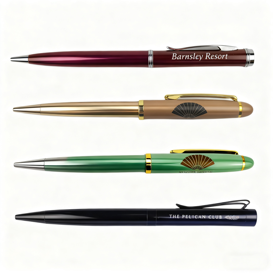 Stylo à bille en métal personnalisé avec logo de marque, idéal pour cadeaux d'entreprise.