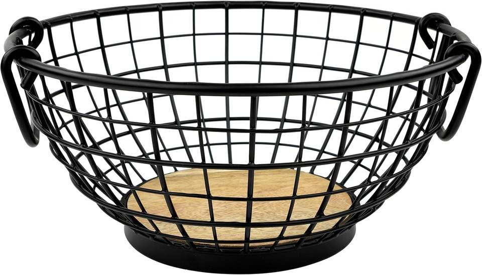 Panier en fil métallique de haute qualité avec base en bois pour la maison et la cuisine utilisations de stockage décoratives