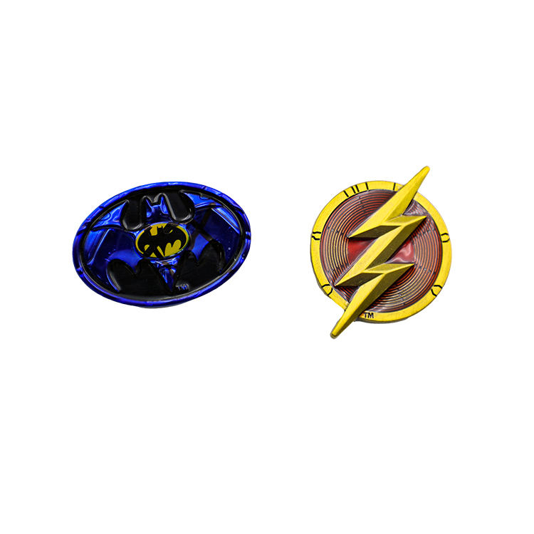 Badge en émail de haute qualité, couleur métallique, motif chauve-souris et éclair, avec revêtement époxy transparent