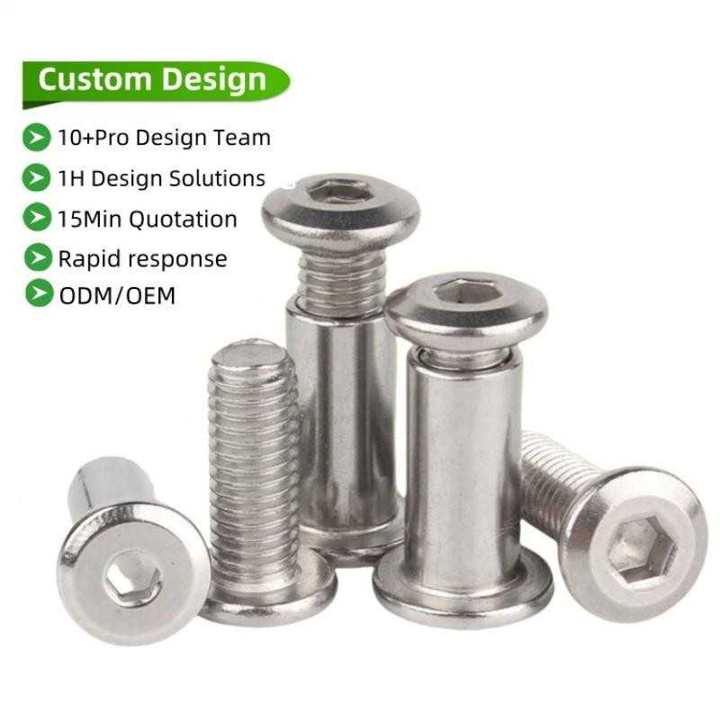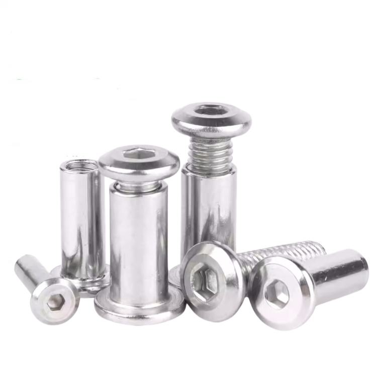 Vis de connexion pour meubles en acier inoxydable métrique de haute qualité M4 M6 M8 M12 à tête cylindrique avec embase hexagonale et écrou à manchon