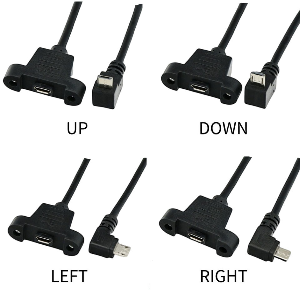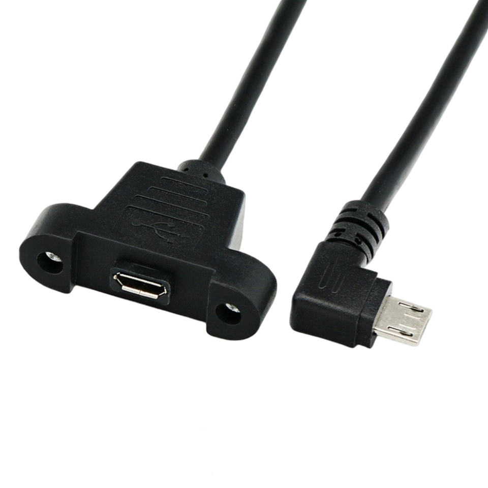 Haute qualité Micro 5pin USB mâle à femelle avec trous de montage sur panneau à vis V8 câble d'extension à 90 degrés