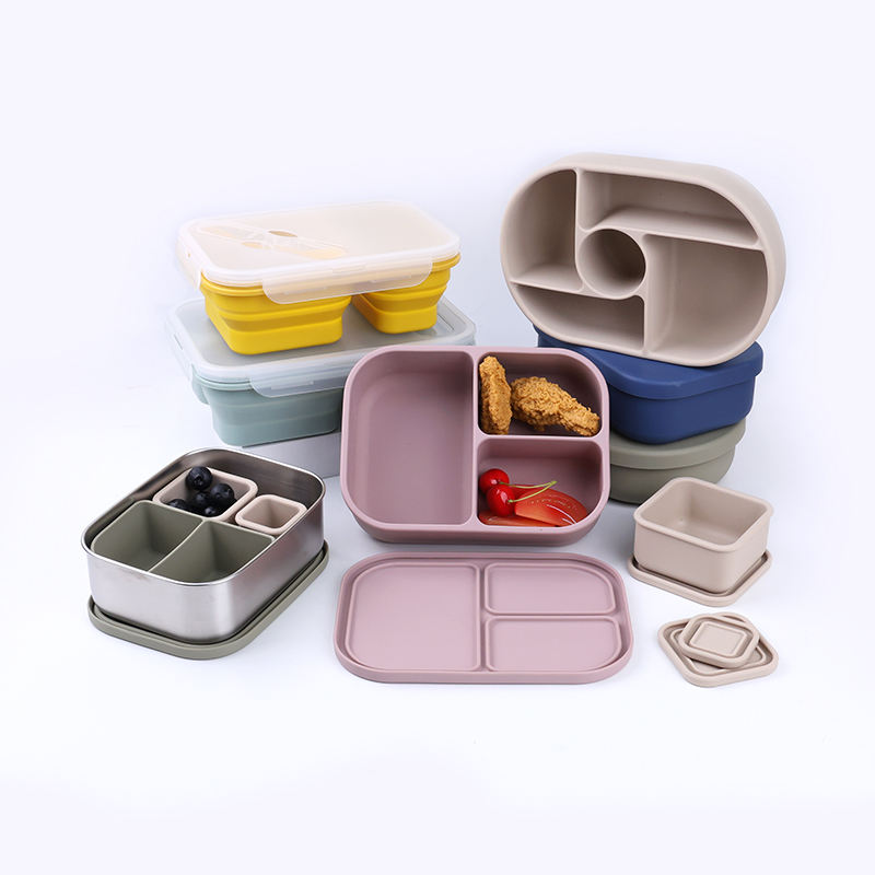 Haute Qualité Micro-ondes Écologique Sans Bpa Silicone Bento Boîte À Lunch Enfants En Acier Inoxydable Snack Conteneurs Alimentaires Boîte Ensemble