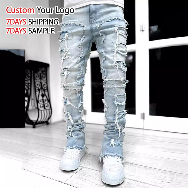 Jean en denim extensible taille mi-haute de haute qualité, coupe droite, style vintage streetwear, coupe slim, décontracté, en coton pour homme