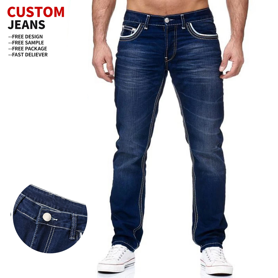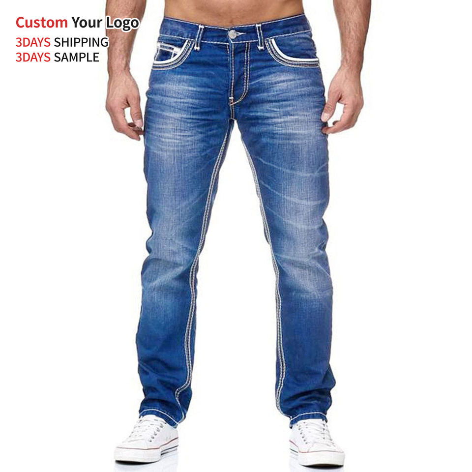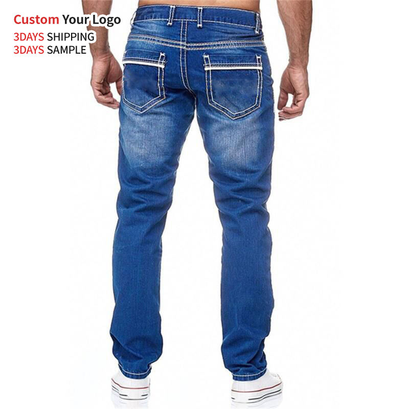 Jean en denim décontracté de haute qualité, respirant, taille mi-haute, coupe slim, avec trous, extensible, style streetwear, coupe droite