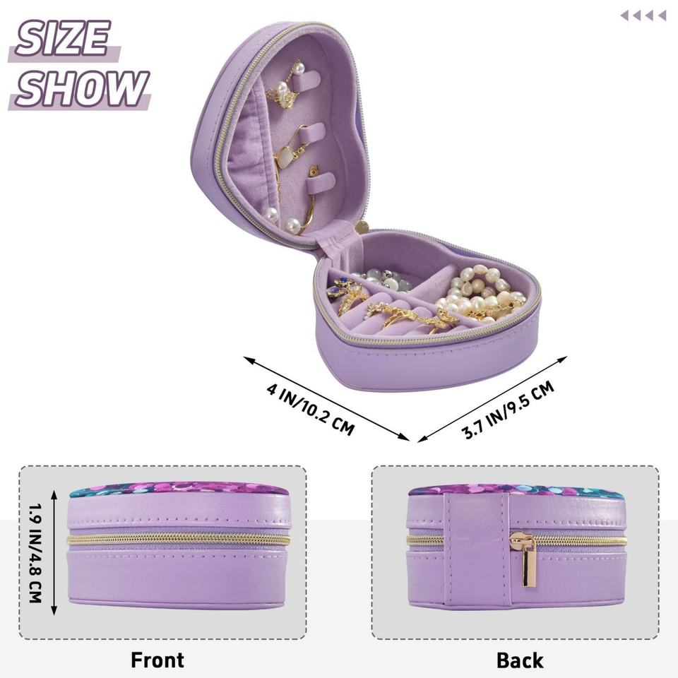 Étui de voyage en cuir PU Saffiano de haute qualité avec fermeture éclair dorée miniature, petit organisateur de bijoux, boîte à bijoux en forme de cœur