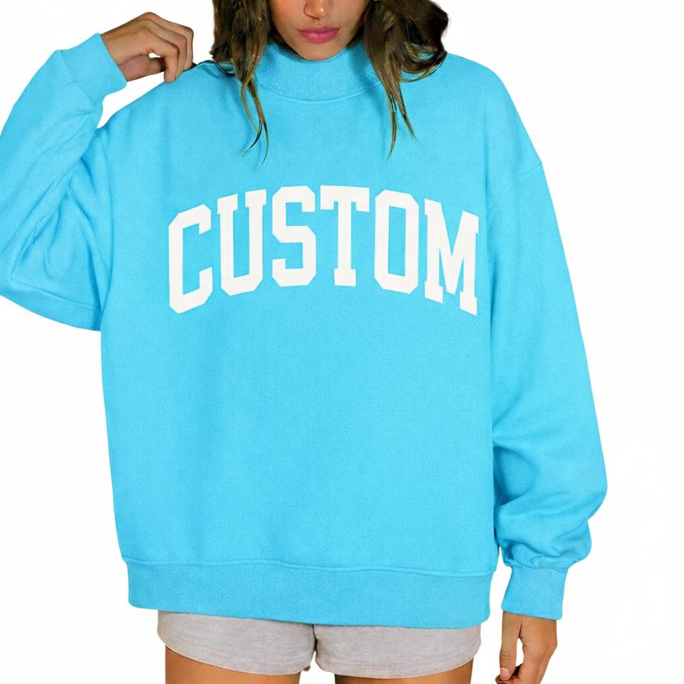 Sweat-shirt à col montant pour femme de haute qualité, en mélange de coton doux, écologique, séchage rapide, décontracté, pour l'hiver, personnalisable sur le devant