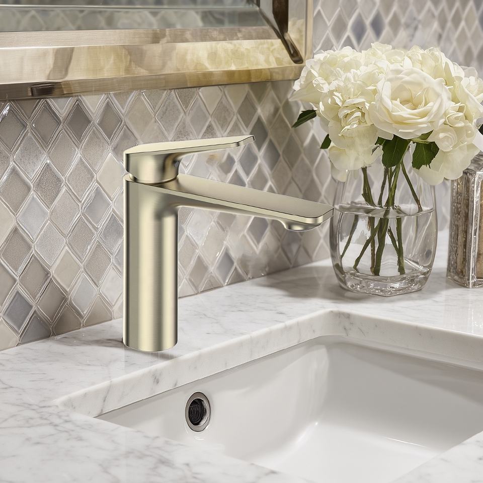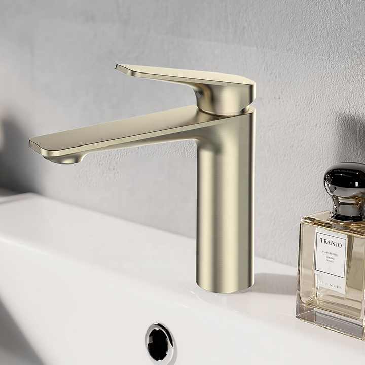 Robinet de lavabo moderne de haute qualité en laiton, mitigeur de lavabo finition or brossé raffiné, robinets de lavabo de salle de bain, mitigeur eau chaude et froide